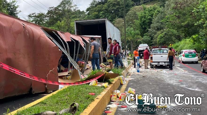 Un tráiler cargado con botes de leche Nido volcó la mañana de este sábado en el bulevar Coatepec-Xalapa. El incidente tuvo lugar cerca de las 9 de la mañana en la curva del río Sordo, donde ya se han registrado previos accidentes debido al exceso de velocidad.