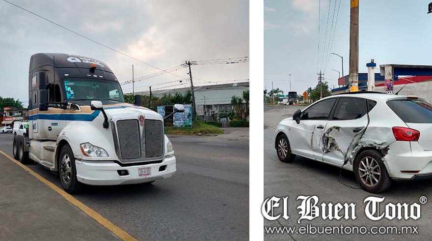 CÓRDOBA.- Un tractocamión de la empresa Carús Abella, chocó y arrastró un automóvil que estaba estacionado, sobre la avenida principal de la colonia La Luz Francisco I. Madero.