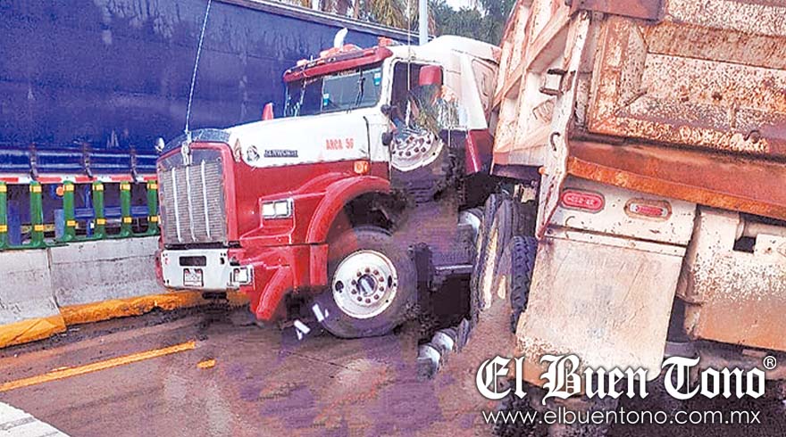Ciudad Mendoza.- Un tractocamión que remolcaba una tolva chocó contra el muro central ayer miércoles en el kilómetro 286 de la autopista Puebla-Orizaba.