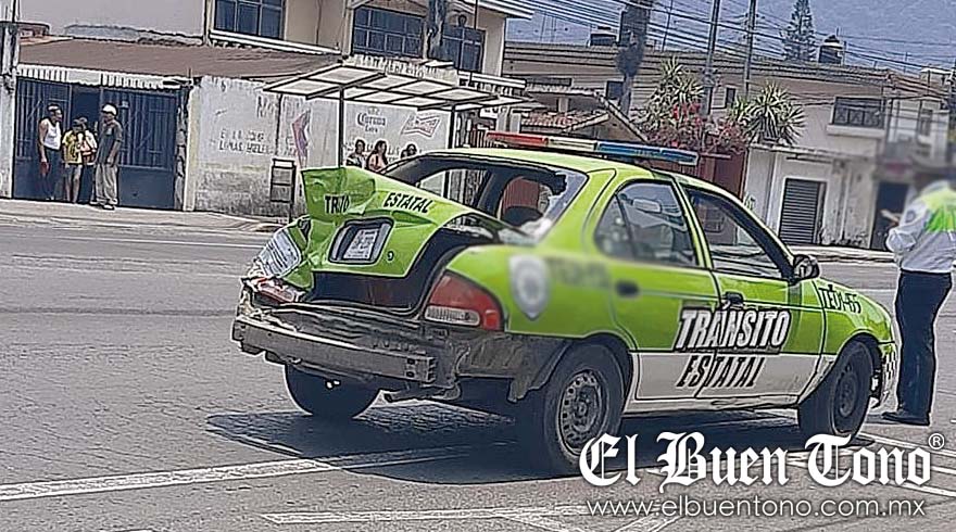 RÍO BLANCO.- El conductor de un tractocamión chocó por alcance contra una patrulla de Tránsito y Vialidad de la Delegación de Río Blanco, en el mismo municipio.