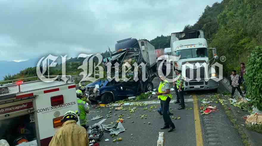 Maltrata, Ver. – Un tráiler con caja seca chocó y aplastó a una camioneta que transportaba verduras, dejando una persona lesionada, esta tarde de jueves, a la altura del kilómetro 261 de la autopista Puebla – Veracruz. La magnitud del accidente provocó la movilización de paramédicos de Caminos y Puentes Federales, así como de autoridades policiacas. El sector fue cerrado momentáneamente, mientras oficiales de la Guardia Nacional llegaron para tomar conocimiento, ordenar el retiro de las unidades y llevar a cabo su dictamen de causalidad. El robo de la mercancía ocurrió en cuestión de minutos sin que ninguna autoridad policiaca lograra evitarlo.