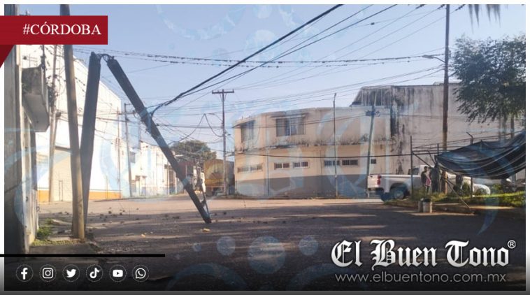 Córdoba, Ver.- Un tráiler que huyó del lugar, derribó esta mañana un poste de energía eléctrica dejando sin servicio a varias familias y establecimientos, en la avenida 5 y calle 43, entrada a la colonia La Sidra.
