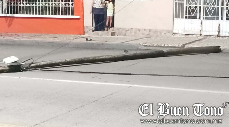 Orizaba, Ver. – Un tráiler chocó y derribó postes de telefonía y energía eléctrica, esta noche de lunes en Norte 2 Oriente 39 A, entronque con Santa Ana Atzacan, en la colonia Abelardo L. Rodríguez.