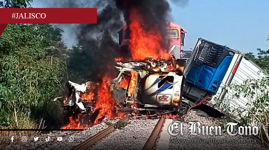 Jalisco.- La mañana de este martes 19 de agosto, se registró un fuerte accidente en el municipio de Tuxpan, Jalisco, cuando un tráiler intentó ganarle el paso al tren y terminó siendo impactado por la locomotora.