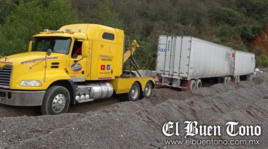 Afortunadamente, los montículos de tierra y grava lograron detener la marcha de la pesada unidad. Al lugar se trasladaron paramédicos de Capufe para brindarle atención médica al trailero, quien logró salir completamente ileso.