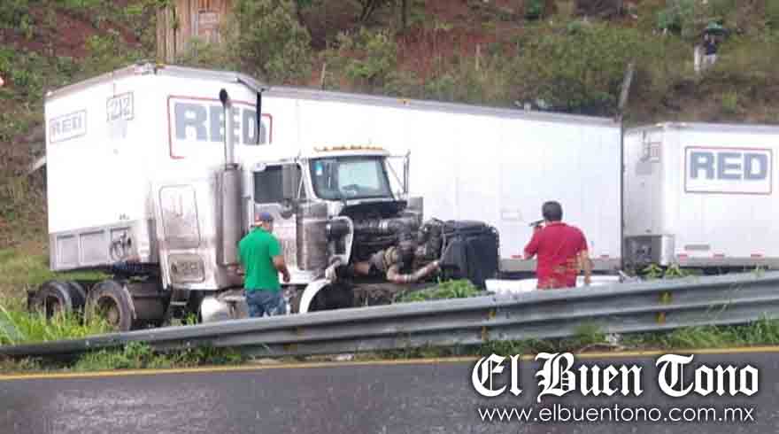 Cd. Mendoza.- La tarde de ayer, un tráiler que circulaba sobre el carril de ascenso de la Puebla-Córdoba, derrapó sobre el piso mojado y se estrelló contra la barra de contención lateral que está a la altura del kilómetro 263.