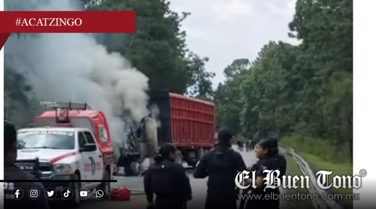 Un tráiler se incendió este martes en la zona conocida como El Ocotal, sobre la carretera federal que conecta El Seco con Acatzingo.