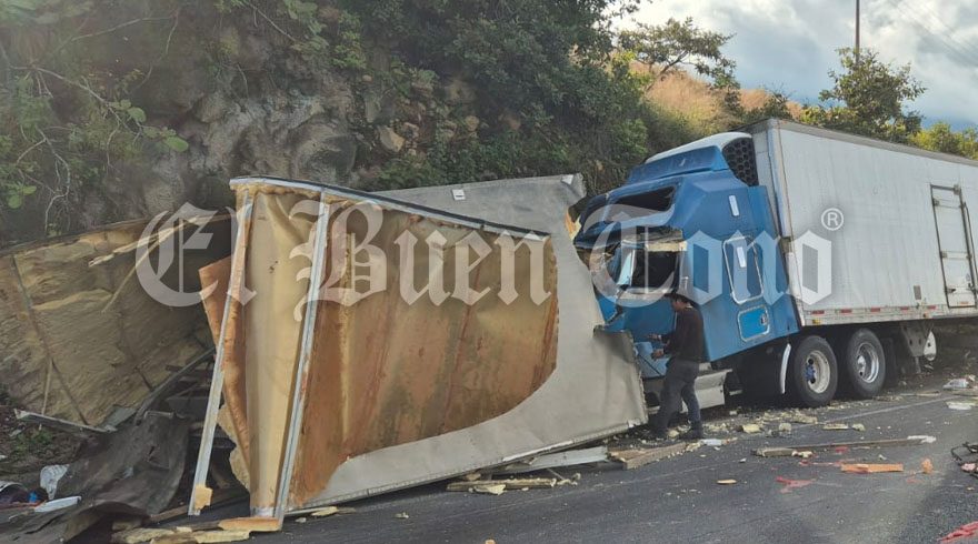 Maltrata.- Un tráiler que se quedó sin frenos chocó por detrás de otro tráiler, el cual intentó detener su marcha para evitar otro accidente mayor sobre la autopista Puebla-Orizaba, a la altura del trébol de Maltrata.