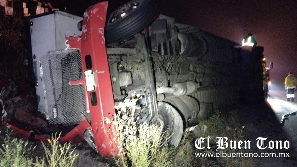 Maltrata.- Una falla mecánica en los frenos provocó que un tráiler, que circulaba sobre el carril de descenso de la autopista Puebla-Córdoba, volcara a la altura del kilómetro 244, aunque a pesar de lo aparatoso del accidente el chofer logró salir completamente ileso. Según información de fuentes policiales, el percance se suscitó alrededor de las 23:00, cuando un vehículo marca Kenworth de color rojo, con placas 368-DC-2 del SPF, viajaba en dirección a Veracruz enganchado a una caja seca cargada con jabón.