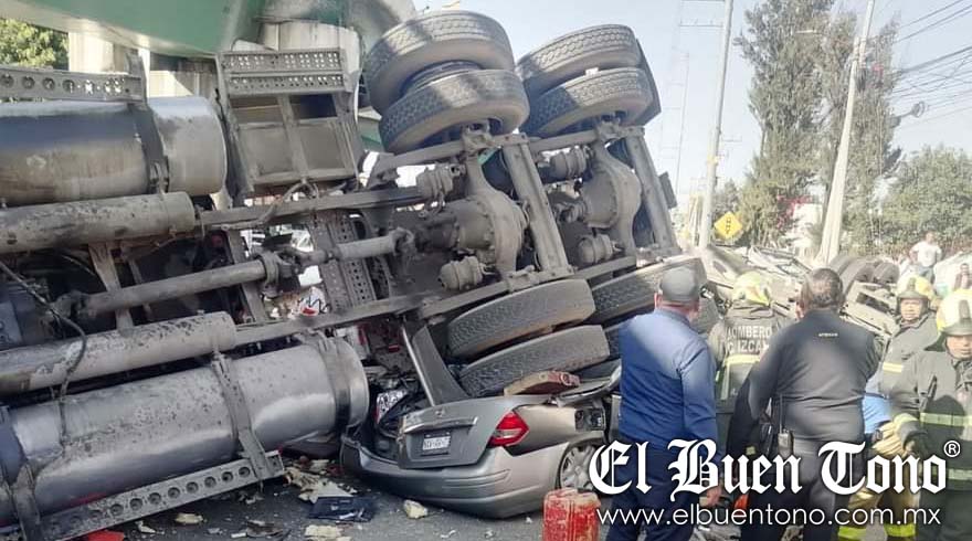 El accidente tuvo lugar esta tarde, en las inmediaciones de Lomas de los Guanos, ubicado junto al Conjunto Industrial Cuautitlán. De manera preliminar, se ha reportado que hay cuatro personas lesionadas como resultado del incidente.