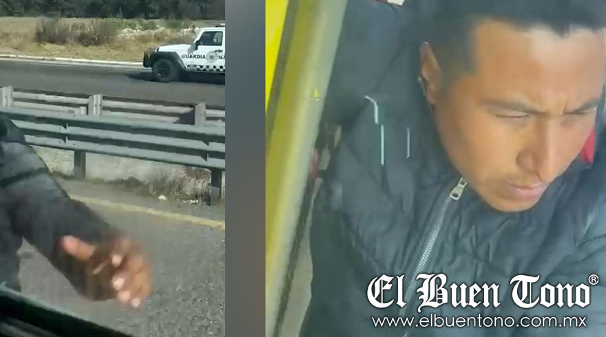 Cerca de las 14:00 horas, el operador de un camión de carga pesada tipo torton de color amarillo que se desplazaba en dirección a Puebla, difundió un video en el cual se muestra a un sujeto montado sobre el estribo de su puerta tratando de hacer que frenara la unidad.