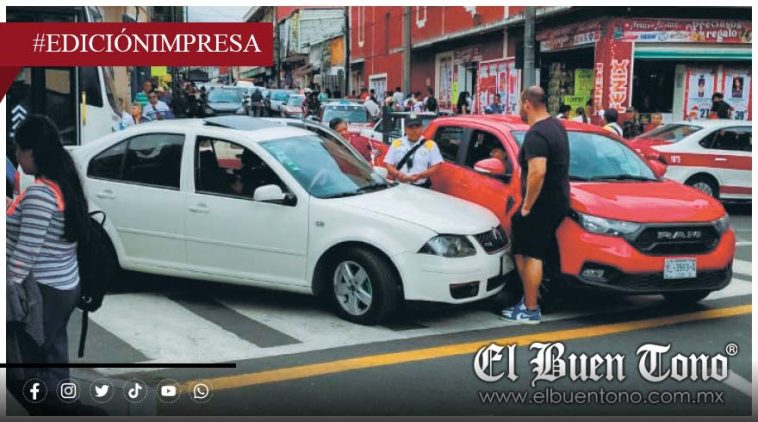 Orizaba.- Un choque por alcance entre dos vehículos particulares se registró este sábado en una concurrida esquina del centro histórico de la ciudad. El incidente ocurrió en la intersección de las calles Oriente 7 y Norte 2, a escasos metros del mercado Melchor Ocampo.