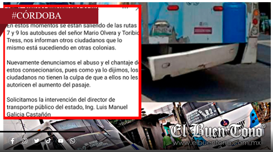 “En estos momentos se están saliendo de las rutas 7 y 9 los autobuses del señor Mario Olvera y Toribio Tress; nos informan otros ciudadanos que lo mismo está sucediendo en otras colonias”, publicó.