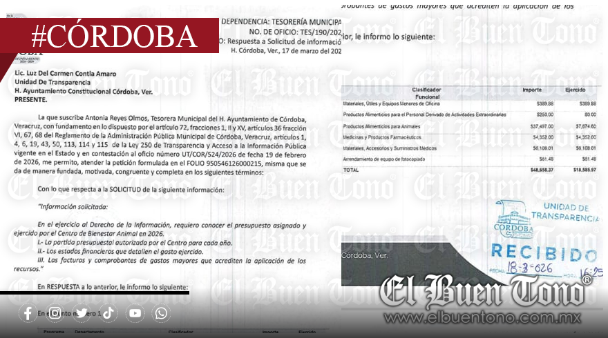 El caso expone la limitada capacidad del Centro de Bienestar Animal (CSA) municipal. Según información obtenida vía transparencia, el presupuesto total asignado para 2026 al programa de Salud Animal es de 448 mil 658.37 pesos. Al corte de la respuesta, el ejercicio reportado era de 18 mil 585.97 pesos.