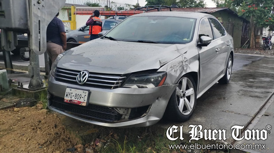 Fortín, Ver.- Un automóvil Volkswagen tipo Jetta resultó dañado al ser impactado por un tren carguero, esta tarde de miércoles a la altura del cruce de la calle 4, cerca del mercado municipal. Personal de auxilio, paramédicos del grupo Samuv, Rescatistas Primeros Respondientes, de Protección civil y bomberos, arribó al lugar para abanderar la circulación y brindarle ayuda al conductor del automóvil.