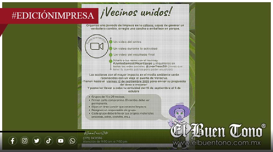 Córdoba.- En medio de un contexto de creciente descontento ciudadano por la falta de productividad legislativa, el diputado Juan Tress ha lanzado una iniciativa que, más que resolver problemas estructurales, parece buscar capitalizar políticamente el esfuerzo vecinal. Bajo el nombre de “Vecinos unidos”, convoca a la ciudadanía a organizar jornadas de limpieza y mejora de espacios públicos, con la promesa de un viaje al puerto de Veracruz para los grupos que demuestren “el mayor impacto”. La propuesta, sin embargo, se levanta sobre una paradoja difícil de ignorar: mientras se pide a la comunidad que done su trabajo y sus propios recursos materiales, el funcionario evade sus propias responsabilidades.