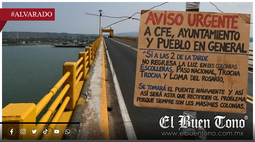 Alvarado, Ver.- Ciudadanos del municipio de Alvarado colocaron un letrero en el puente que pasa por el Río Papaloapan dando un ultimátum a Comisión Federal de Electricidad (CFE) para que les dote de energía eléctrica.