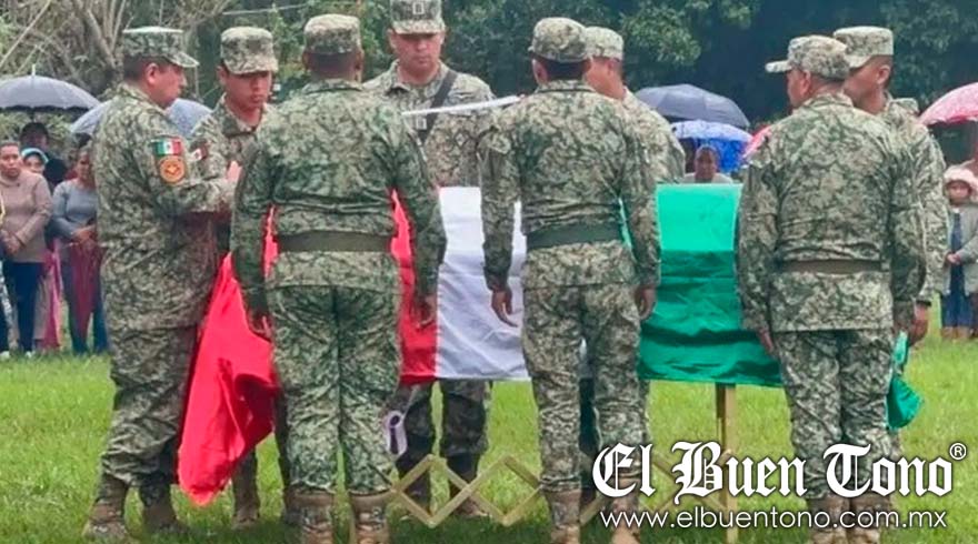 En la cancha deportiva de la comunidad, se llevó a cabo un solemne ceremonial militar para rendir homenaje a José María Ramírez Hernández, quien tenía tres años y dos meses de servicio en el Ejército Mexicano. La banda de guerra tocó las llamadas de honor, y en un emotivo gesto, compañeros levantaron sus armas al cielo para realizar una salva de fusilería, conforme al protocolo militar.