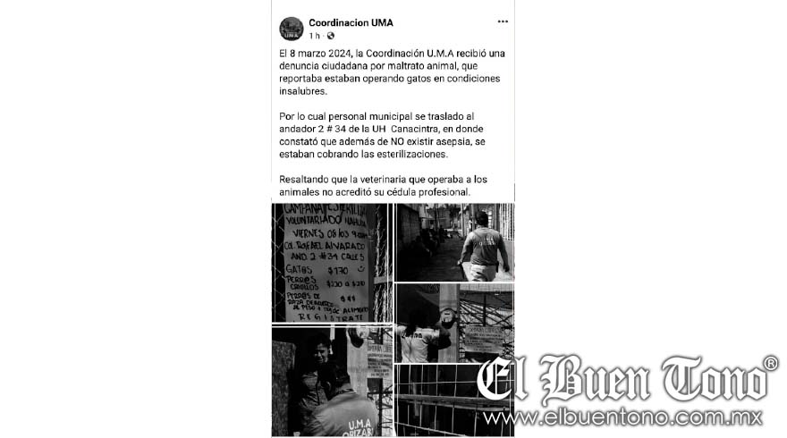 A través de su página de red social la Coordinación U.M.A aseguró que había recibido una denuncia ciudadana por maltrato animal, por lo que acudió personal municipal a la Unidad Habitaciónal Canacintra, en la Colonia Rafael Alvarado, en donde constató que además de no existir asepsia, se estaban cobrando las esterilizaciones, y la veterinaria que operaba a los animales no acreditó su cédula profesional, según se leía en la publicación.