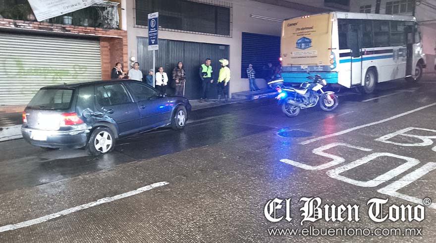 El accidente tuvo lugar cuando, posiblemente, el conductor del autobús con número de identificación F-186 no tomó las precauciones adecuadas y colisionó con el vehículo compacto de color gris con placas YJK-745-B en su costado derecho trasero.