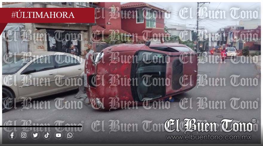 El auto impactó contra un vehículo estacionado antes de volcarse, causando gran alarma entre los vecinos y transeúntes. De inmediato, cuerpos de emergencia, incluyendo paramédicos de la Cruz Verde y elementos de la Policía Municipal, acudieron al lugar para atender la situación.
