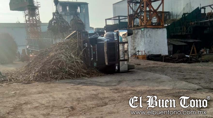 Sin embargo, ayer, durante la descarga de caña para su molienda, un camión volcó debido a que no todas las llantas se introdujeron correctamente en el área del volteador, provocando la pérdida de equilibrio y la caída del vehículo.
