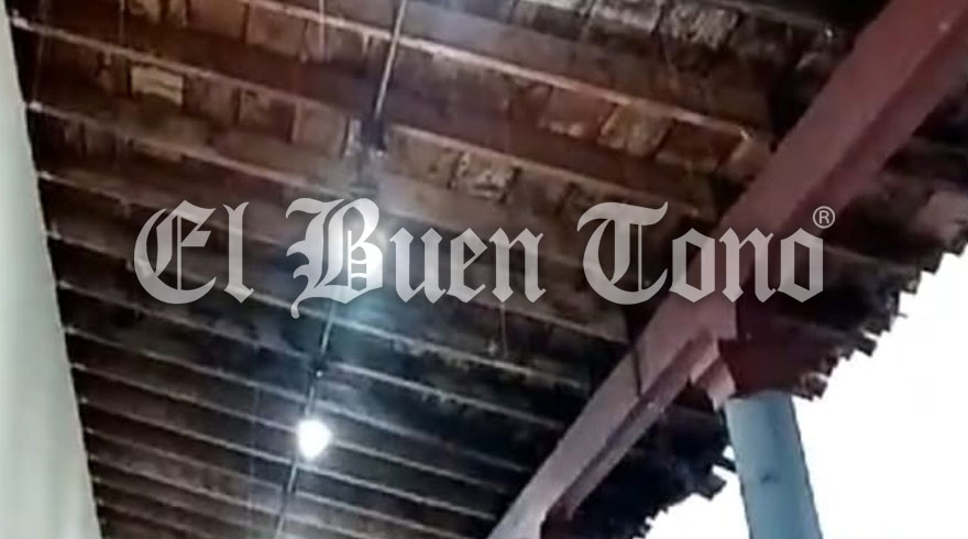 Coetzala.- El techo del ayuntamiento de Coetzala es una coladera, luego de que por las vigas se filtra el agua, nadie puede guarecerse de la lluvia en el corredor del Palacio Municipal.