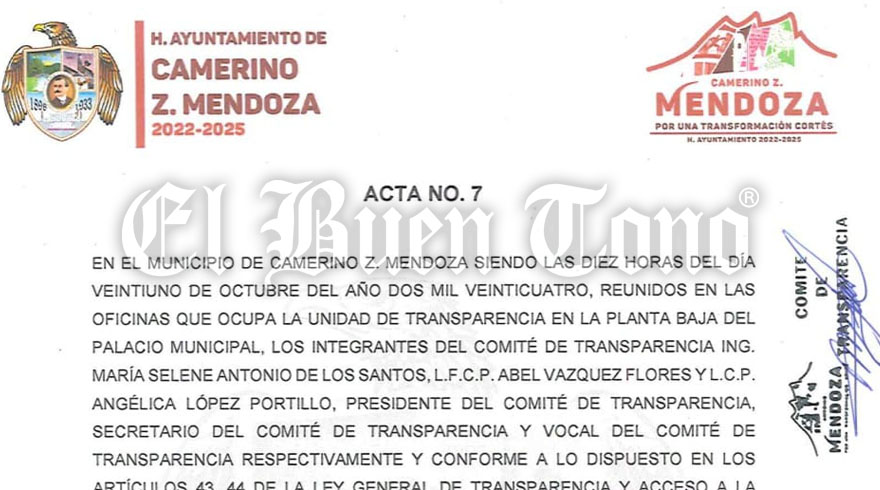 Ciudad Mendoza, Ver.- Los integrantes de la Unidad de Transparencia del municipio de Ciudad Mendoza, María Selene Antonio de los Santos, Abel Vázquez Flores y Angélica López Portillo, justificaron su incapacidad para responder a dos solicitudes de transparencia efectuadas por este medio, argumentando una excesiva carga de trabajo.