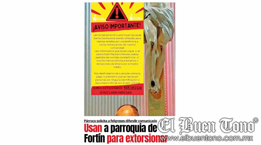 Fortín.- Una persona que se hace llamar “padre Rafa”, utiliza el nombre de la parroquia de Santa Cecilia para defraudar a restaurantes y solicitar préstamos vía telefónica, denunciaron públicamente afectados.
