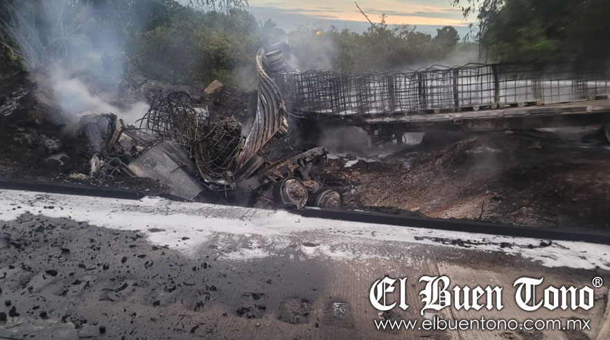 El trailero y la mujer, probablemente su pareja, murieron calcinados al incendiarse el tractocamión y las dos plataformas que transportaban bidones de solventes químicos, luego de chocar contra objeto fijo, en