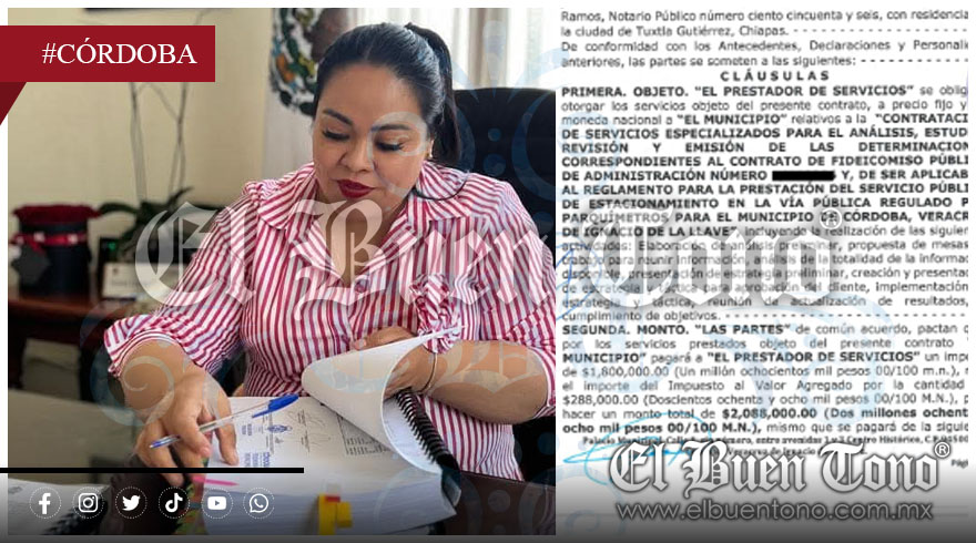 Córdoba, Ver.- La síndica Vania López González, otorgó un contrato por 2 millones 088 mil pesos a la empresa chiapaneca “Consultoría Inteligente Multidisciplinaria y de Asistencia, S.C.”, ligada al Partido Verde Ecologista de México (PVEM), para servicios cuya ambigüedad técnica contrasta con el monto millonario y los vínculos políticos.