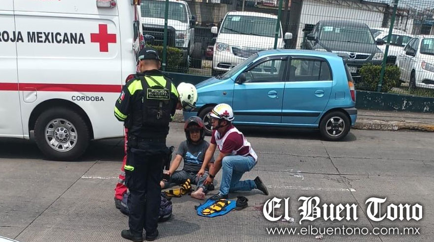 Córdoba, Ver.-Con probable fractura en la pierna izquierda, resultó un motociclista al ser arrollado por un vehículo, en el cruce de la avenida 11 y calle 3.
