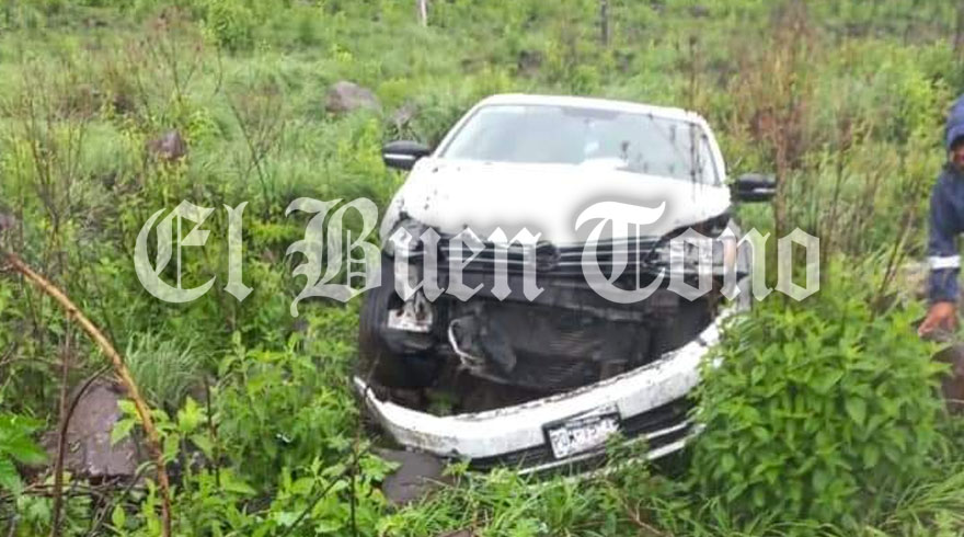El percance se dio cuando el vehículo en el que viajaba una familia, derrapó sobre el piso mojado y acabó dentro de unos matorrales, por lo que automovilistas que circulaban por el lugar alertaron a los grupos de emergencia.