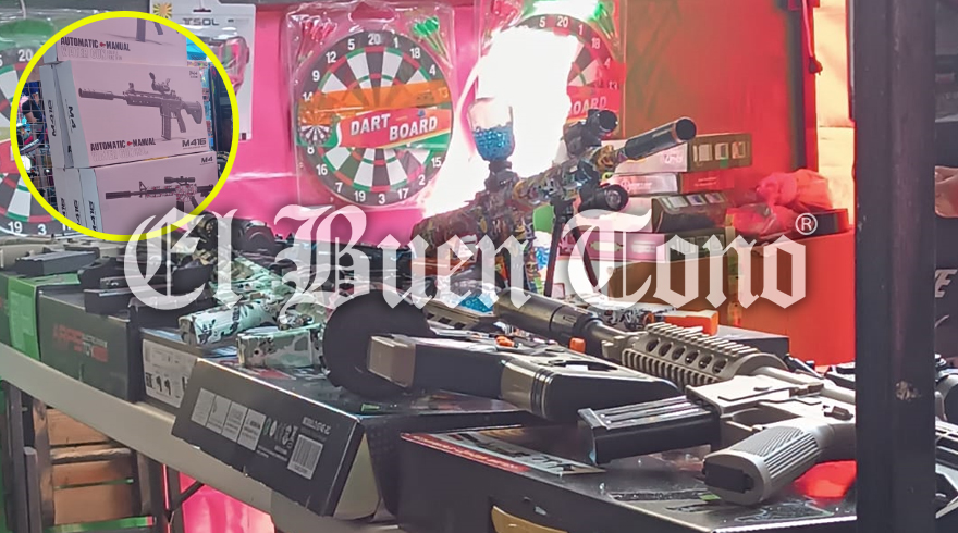 Orizaba.- En el marco de la Feria del Juguete Orizaba 2025, el mercado Cerritos se convirtió en escenario para la comercialización de armas bélicas como juguetes.
