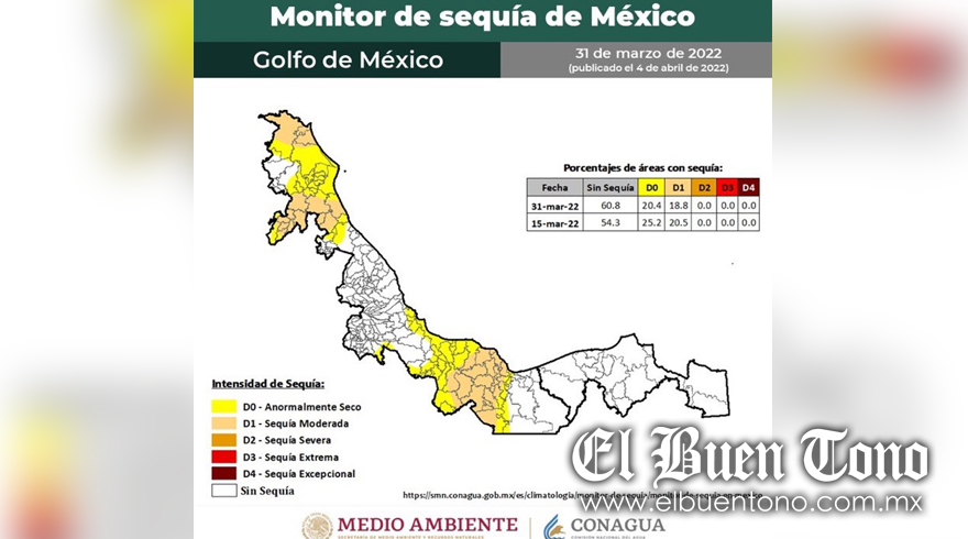 Hasta el pasado 15 de marzo se tenían 45 municipios con sequía moderada, y podrían incrementar. En el 2021 entre el 15 y 31 de marzo había 29 municipios con sequía moderada y siete con sequía severa.