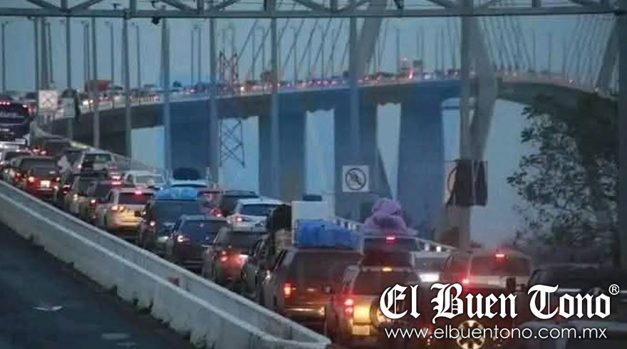 Veracruz.- Desde ayer, el Puente Tampico y sus alrededores se han convertido en un verdadero caos vial, afectando a miles de automovilistas y transportistas que intentan cruzar entre Tamaulipas y Veracruz. Decenas de tráileres permanecen detenidos en la carretera, lo que ha generado embotellamientos monumentales y una creciente frustración entre los conductores.
