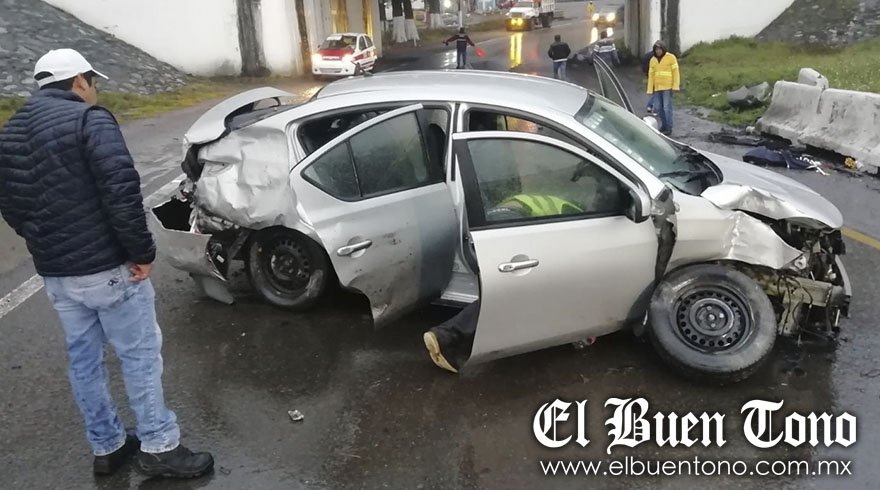Justo al llegar a la salida hacia la congregación Vicente Guerrero, el hombre que iba al volante no redujo la velocidad al tomar la curva, por lo que derrapó varios metros sobre el asfalto mojado hasta que el carro acabó estrellándose contra el muro de concreto lateral.