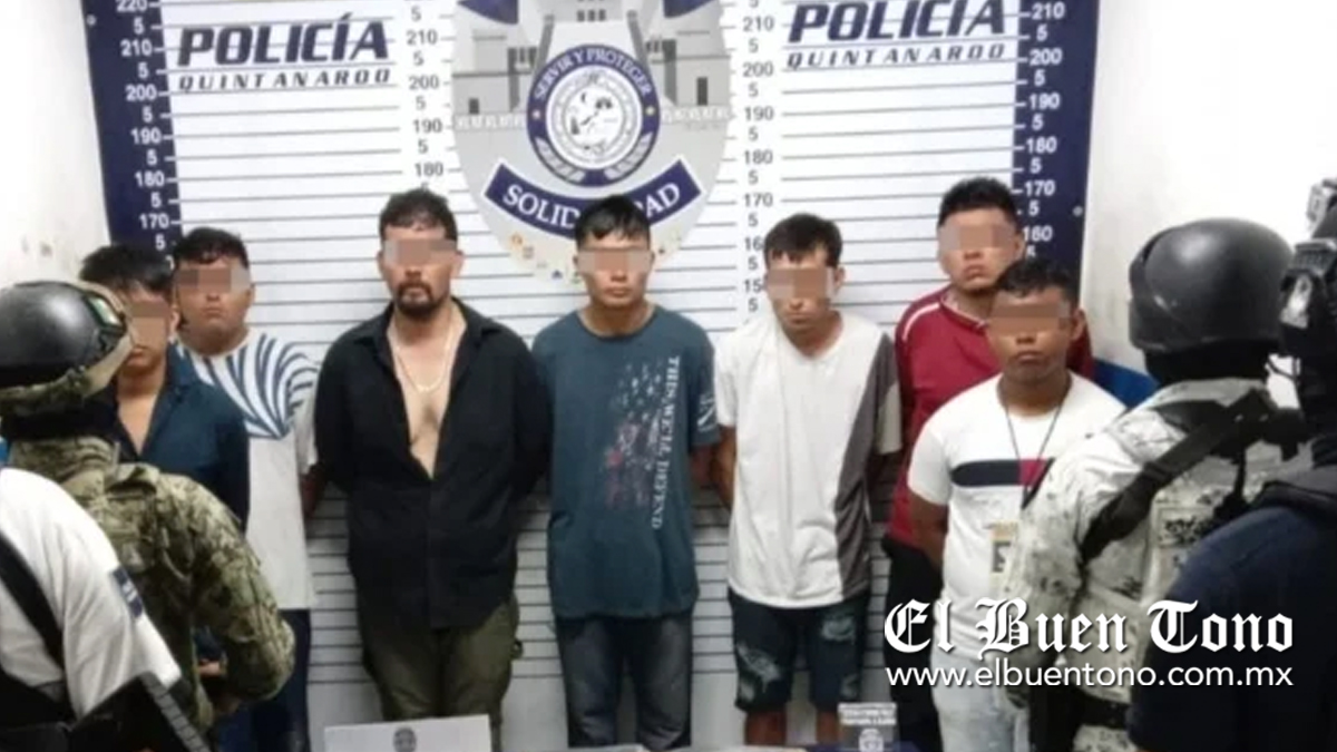 Los detenidos fueron identificados como Omar “N” de 38 años de edad, originario de Tamaulipas, Mario “N” de 18 años, originario de Quintana Roo, Braulio “N” de 21 años de edad, originario de Guanajuato, José “N” de 27 años, originario de Tabasco, Kevin “N” de 22 años de edad, Julio “N” de 18 años de edad y Alexis “N” de 29 años de edad, estos tres últimos originarios de Chiapas.