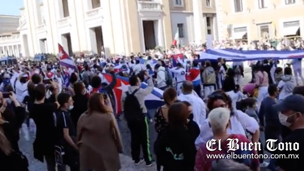 Vaticano.- Al rededor de 500 cubanos se manifestaron este domingo a las afueras del Vaticano luego de que la Guardia de la Santa Sede les impidiera el paso a la oración del Ángelus del Papa Francisco, en donde pretendían denunciar la represión del régimen.