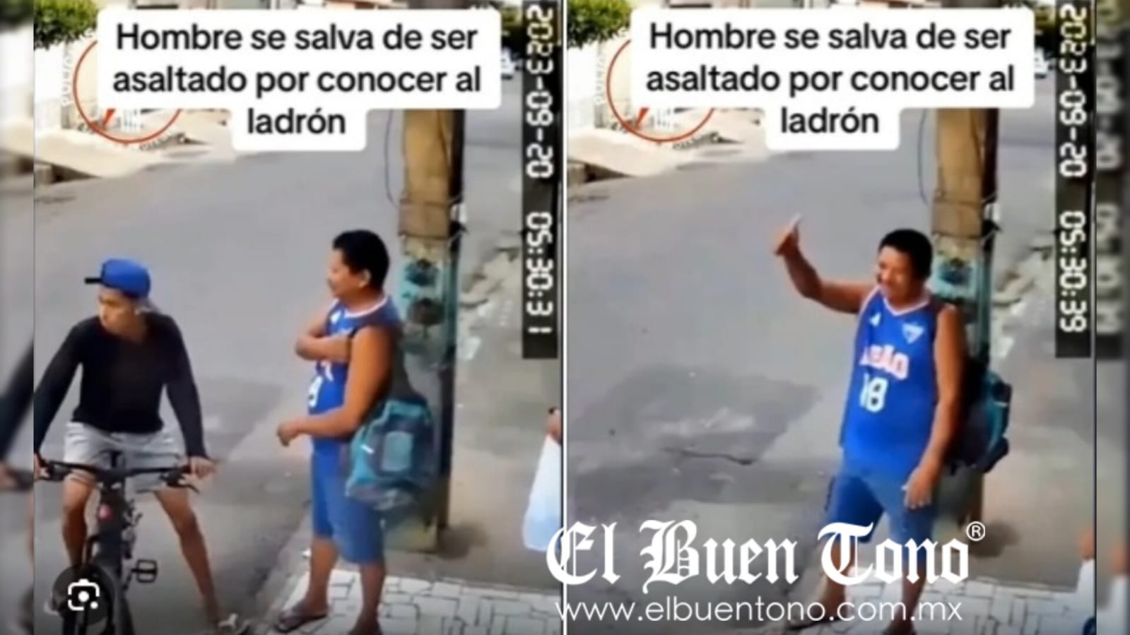Inicialmente, el hombre asustado se dispone a entregar su mochila, creyendo que es lo que le exigen. Sin embargo, en un giro inesperado de los acontecimientos, se da cuenta de que conoce a uno de los ladrones, quien está acompañado por el otro individuo. La expresión de alivio se dibuja en su rostro y no duda en saludar a su conocido.