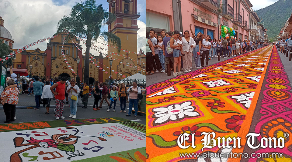 El obispo, Monseñor Eduardo Cervantes Merino, junto con el párroco del Sagrario de la Catedral, el padre Demetrio Landa González, recorrió las calles donde el artista plástico Efrén Chacón y su equipo de trabajo plasmaron los tapetes multicolores.