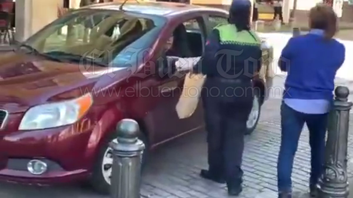 La mujer que conducía un automóvil Chevrolet Aveo color guinda, salió por la ventana y se le abalanzó a la oficial para intentar quitarle la licencia sujetándola del cuello e inclusive le mordió un dedo, “la licencia se iba a quedar en resguardo para asegurar el pago, la señora intentó quitarme la licencia y al oponer resistencia me mordió un dedo”, dijo la oficial de Tránsito.