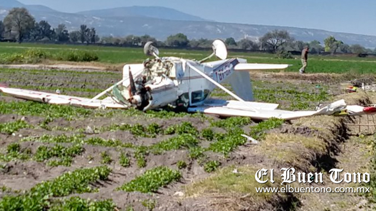 Cuernavaca.- Una avioneta se desplomó la mañana de este lunes sobre un terreno de siembra en la comunidad de Tepanco de López, dejando como saldo dos personas heridas.