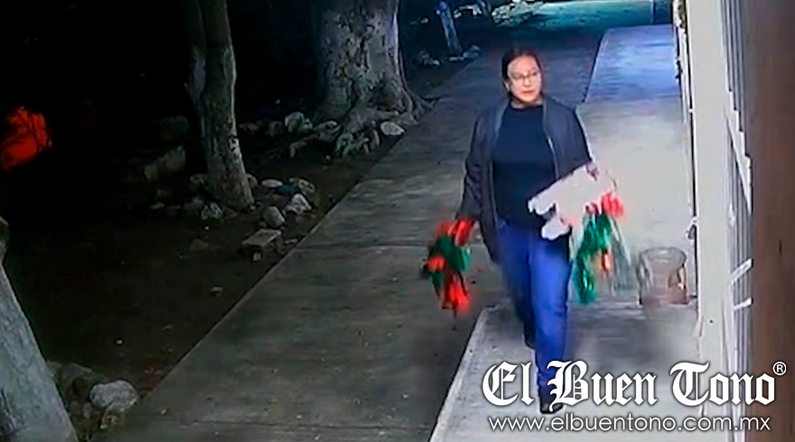 Córdoba. – Una mujer fue captada por cámaras de seguridad de la Telesecundaria de la unidad habitacional Arboledas, cuando se metió a robar varios adornos navideños la noche del pasado 14 de diciembre.
