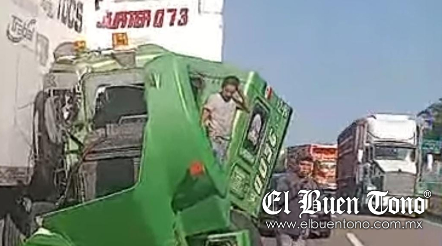 Cuitláhuac. – Un trailero se salvo de milagro, luego de impactarse por detrás de otro tráiler la mañana de este lunes, al circular sobre la autopista Córdoba-Veracruz, a la altura del kilómetro 44.