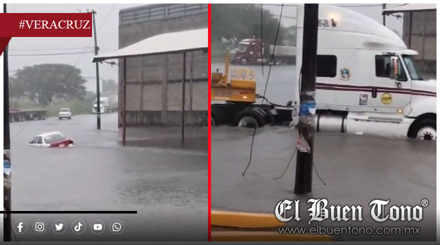 Veracruz.- Una fuerte inundación registrada la mañana de este viernes dejó completamente varado a un taxi en calles del complejo industrial Bruno Pagliai, donde el nivel del agua cubrió prácticamente toda la vialidad, impidiendo el paso a automovilistas y trabajadores de la zona.