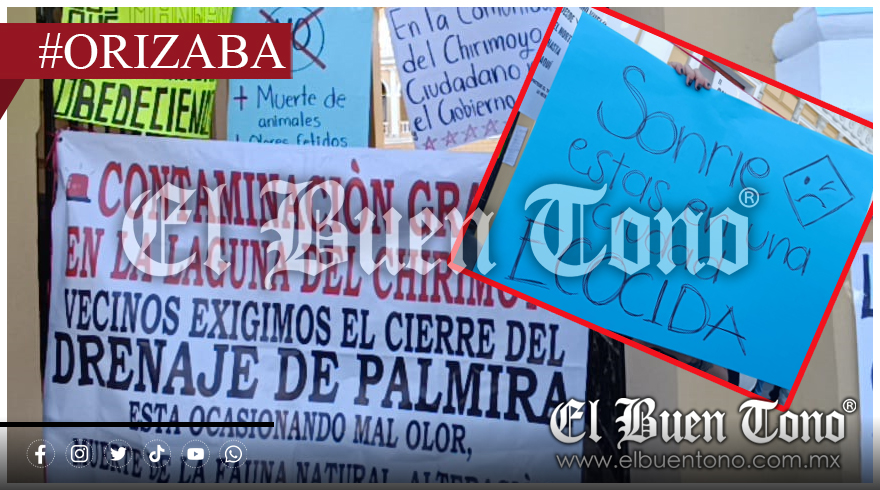 Orizaba.- Con cartulinas en mano, en las que se leía “Sonríe, estás en una ciudad ecocida”, vecinos que colindan con la Laguna del Chirimoyo tomaron el Palacio Municipal de Orizaba para exigir una solución a la contaminación que afecta al humedal. Señalaron como principal responsable del drenaje sanitario proveniente de Mariano Escobedo, aunque también acusan al ayuntamiento orizabeño de omisión y acoso contra quienes han denunciado el problema.