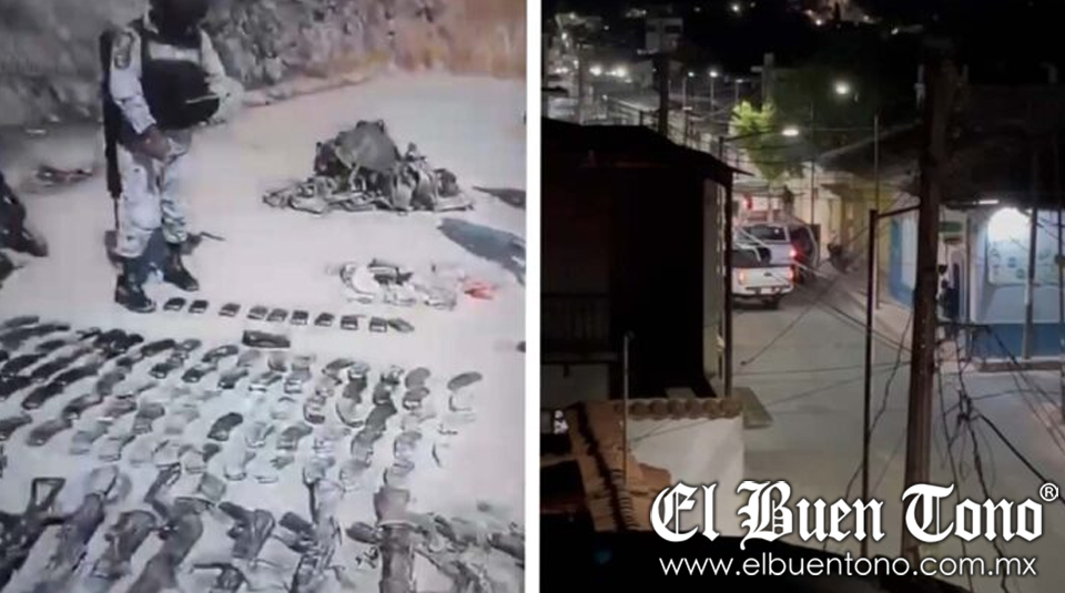 Videos posteriores mostraron el impacto devastador de la violencia, con hombres muertos en el suelo y bodegas incendiadas donde se guardaba material de construcción para un puente cercano. Los militares confiscaron armas y cargadores de metralletas a los grupos armados involucrados.