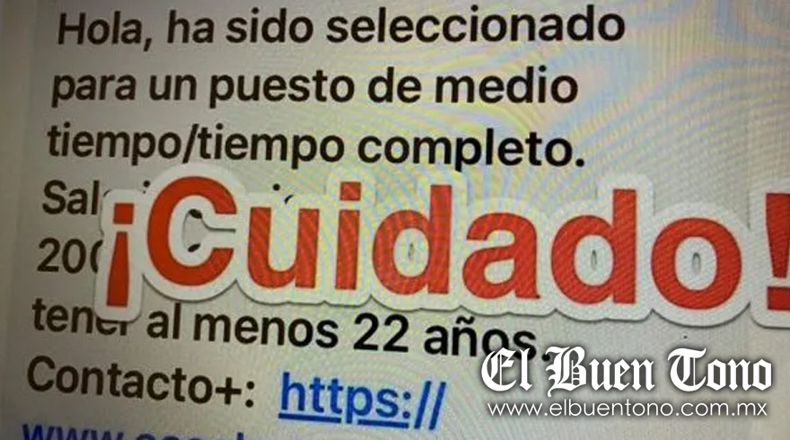 El audio dice: “Buenos días les comparto este mensaje que me llegó el día de ayer a mi celular, y platicando con algunas personas me están comentando que este mensaje así parecido le llegó a la chava Viridiana para buscar empleo. Tengan mucho cuidado por favor porque estos son engaños”.