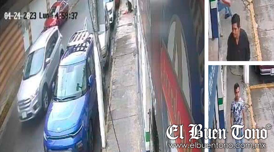 Las imágenes muestran a dos sujetos de complexión delgada, morenos y cabello ondulado, quienes fueron captados por una cámara cercana al lugar de los hechos.
